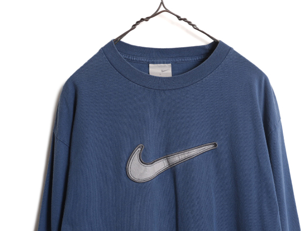 | 商品名 | 00s ナイキ スウォッシュ 刺繍 長袖 Tシャツ メンズ L 古着 00年代 オールド NIKE ビッグ ロゴ ロンT クルーネック ブルー ヘビーウェイト |