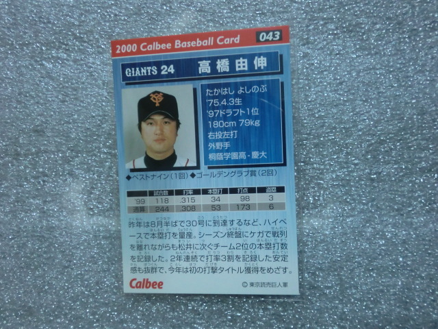 | 商品名稱 : | カルビー プロ野球チップス 2000 No.43 高橋由伸 金箔サイン |