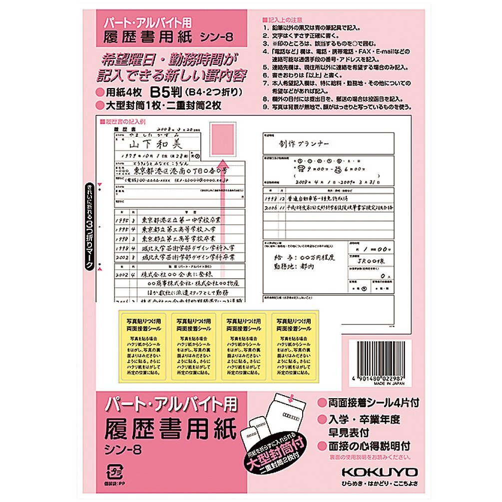 ・ B5サイズ(B4二つ折り) シン-8・Size:B5サイズ(B4二つ折り)・【タイプ】 パート・アルバイト用・【サイズ】 B5(B4・3つ折り)説明 ●サイズ/B5(B4・2つ折り) ●タテ・ヨコ/257・364 ●枚数/4枚(大型封筒1枚・小型二重封筒2枚・接着シール付き) ●紙質/上質紙
