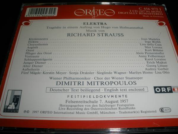 商品名稱 : ミトロプーロス R シュトラウス エレクトラ ボルク デラ・カーザ ウィーン ザルツブルク Strauss Elektra Mitropoulos Bork Della Casa