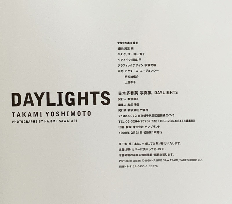 | 商品名稱 : | 吉本多香美/写真集/ DAYLIGHTS /撮影:沢渡朔/初版帯付き |