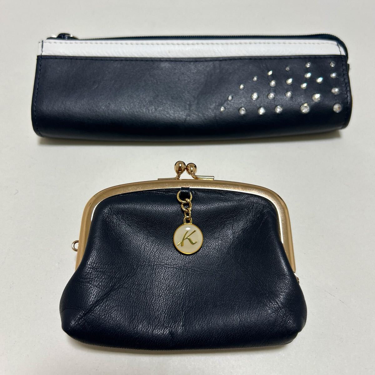 ☆美品☆ ◆Kitamura キタムラ モトマチ ネイビー 2点セット◆ がま口 コインケース & ビジュー ペンケース 【送料無料】0402