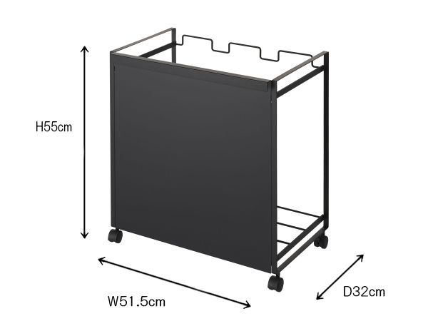 | ■幅515×奥行320×高さ550mm(キャスター含む) 約3kg ■スチール(本体)、ナイロン(キャスター) ■組み立て品 |
