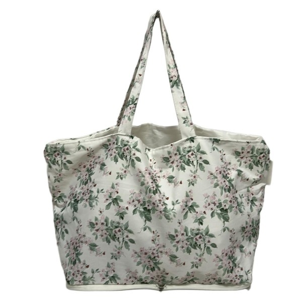 ローラアシュレイ LAURAASHLEY トートバッグ - 白×グリーン×マルチ 花柄/折りたたみ 美品 バッグ