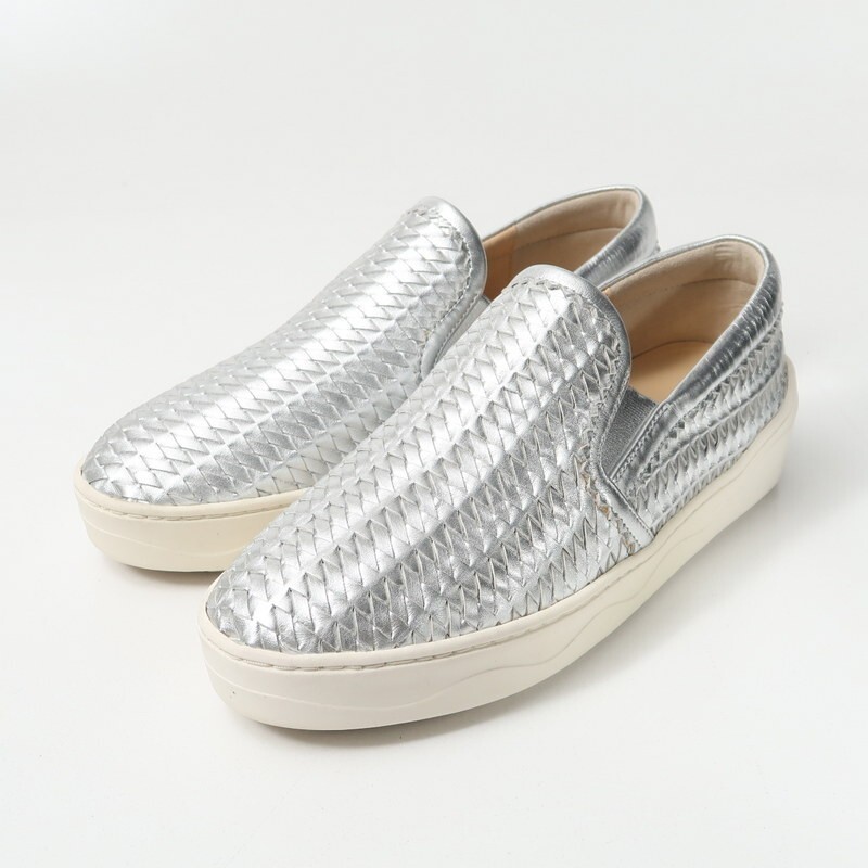 | GS0262■tsumori chisato WALK ツモリチサト ウォーク レザー メッシュスリッポンスニーカー プラットフォーム 靴 サイズ23.5 シルバー系 | |||
