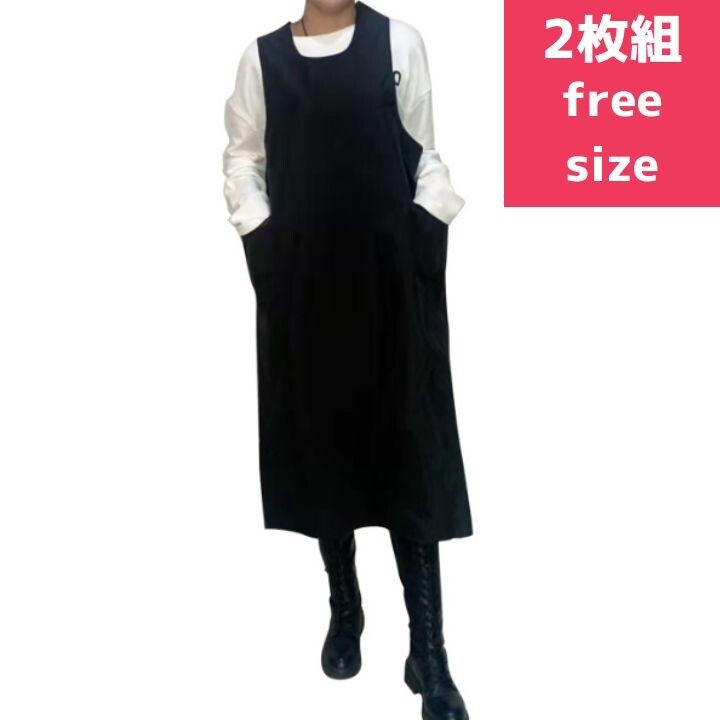 2枚組 エプロン かぶるたけ 大人 おしゃれ 撥水加工 ポケット付き ロング丈