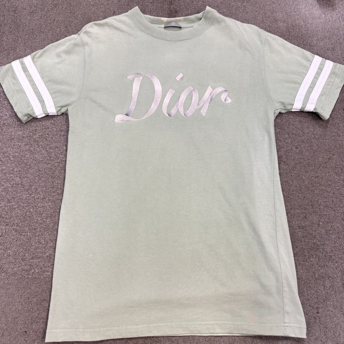 24『美品・現行タグ』 DIOR ディオール メンズ コンパクトジャージー 半袖 Tシャツ ビッグロゴ 刺繍 ライトグリーン Mサイズ相当