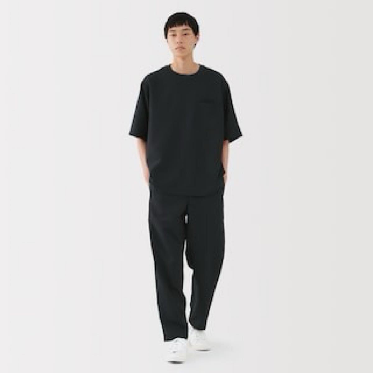 無印良品 風を通す ストレッチ 五分袖布帛Tシャツ紳士XL・黒