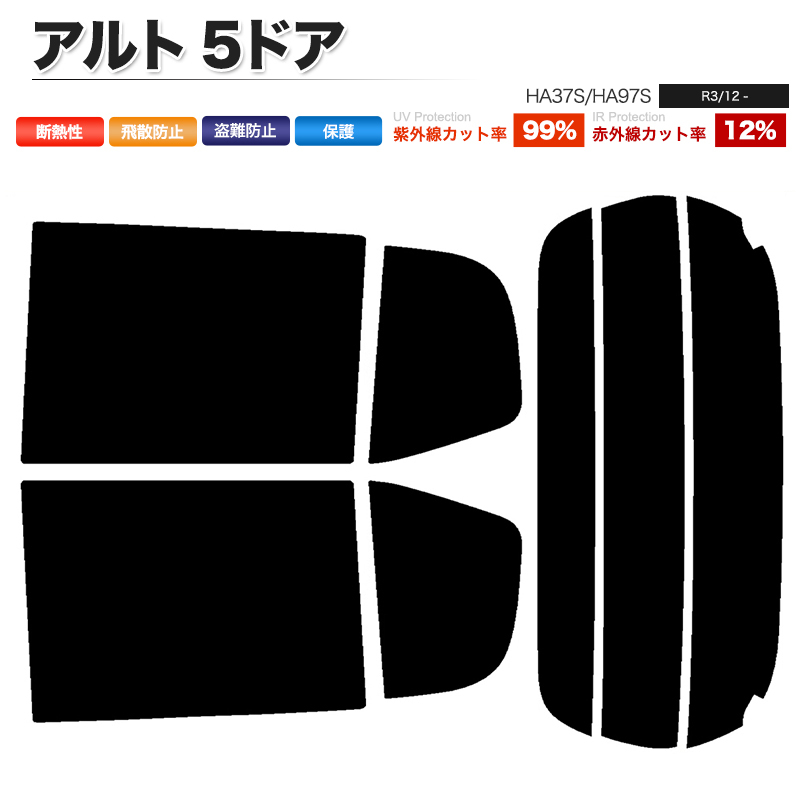 | 商品名稱 : | カーフィルム ダークスモーク カット済み リアセット アルト 5ドア HA37S HA97S ガラスフィルム■F1126-DS |