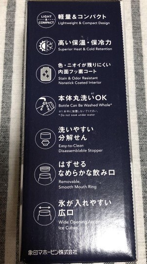 □商品詳細 新品未使用品、付属品完備です。 ◆ステンレス真空2重のまほうびんで、温かい飲み物や、冷たい飲み物の飲みごろ温度を長時間キープ。 ◆茶渋やコーヒーの色・ニオイが残りにくい「内面フッ素コート」 ◆本体丸洗いOK!洗いやすい「分解せん」 ◆軽量・コンパクトで持ち運びしやすい ◆取りはずして洗える樹脂カバーつき。 ◆口あたりが良く、飲みやすい。 ◆氷が入れやすい「広口約4cm」 カラー:ネイビー サイズ:360ml サイズ(幅×奥行×高さ)6.5×6.5×17㎝ 95℃の熱湯が6時間後でも70℃以上/4℃の冷水が6時間後でも9℃以下