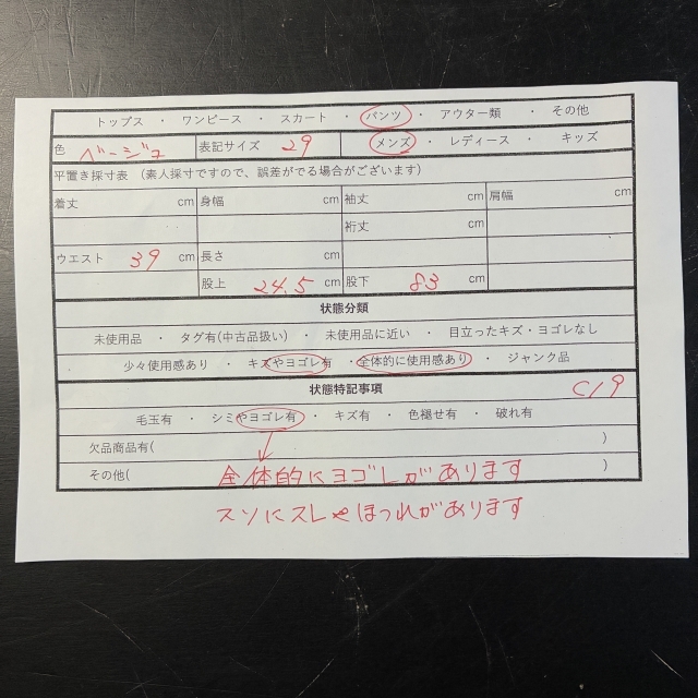 ・シミやヨゴレ有(全体的にヨゴレがあります)