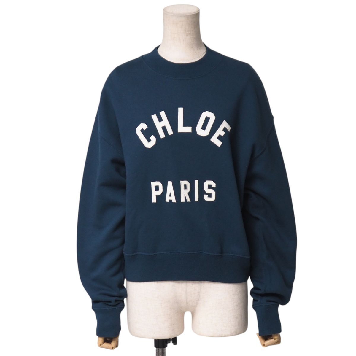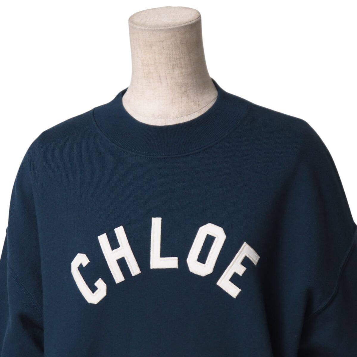 | SMI0187☆クロエ Chloe ロゴ刺繍 スウェットシャツ トレーナー プルオーバー モックネック 裏毛素材 長袖 コットン ネイビー Mサイズ | |||