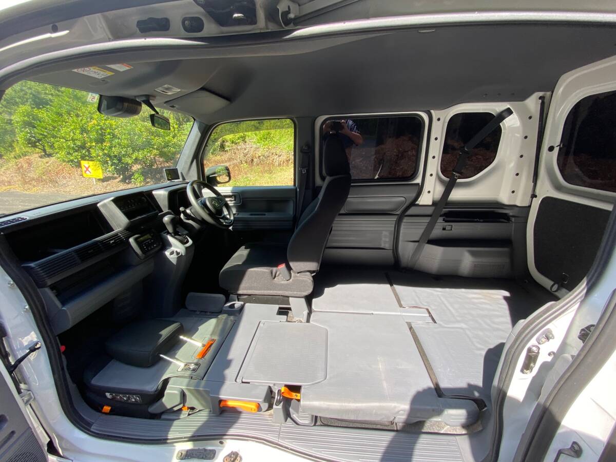 助手席を下げると、バイクも積み込み出来る広さと高さがありますし、使い勝手は良いと思います。