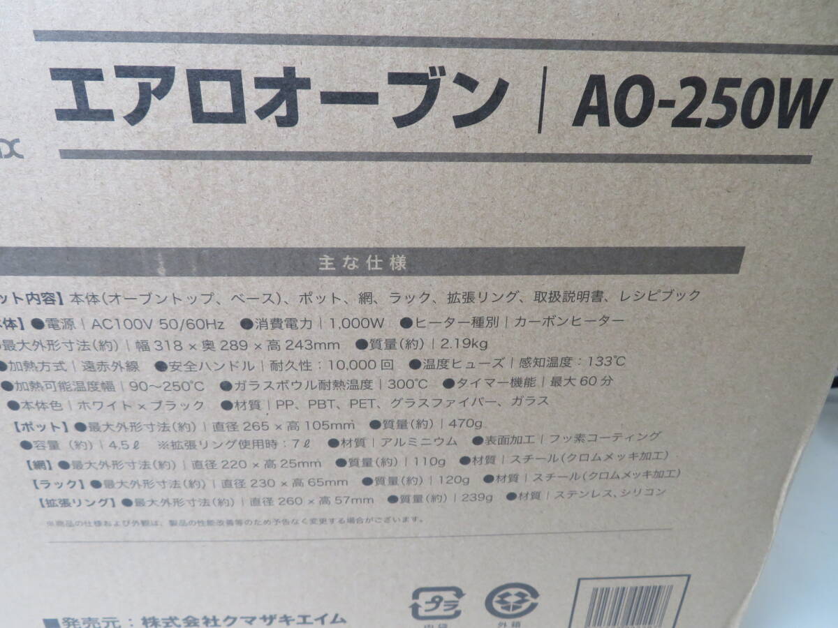 ▽【美品】エアロオーブン AO-250W bearmax ベアマックス ノンオイル調理 ※通電・動作確認済み