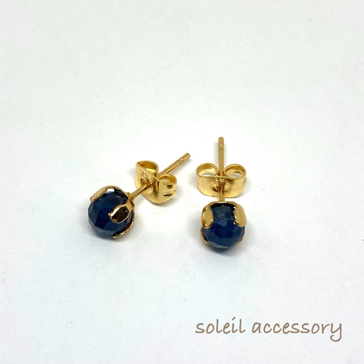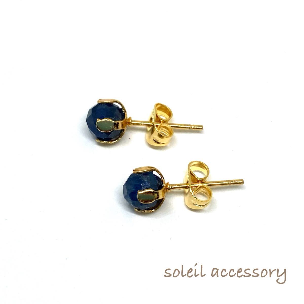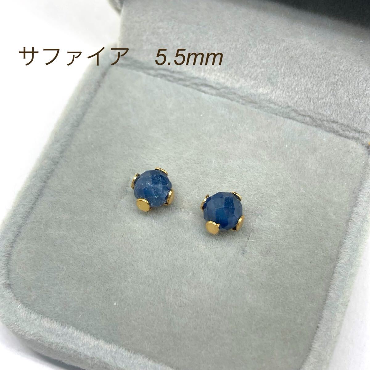 629【サファイア】天然石一粒ピアス*5.5mm