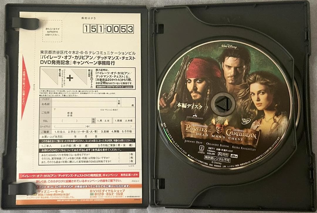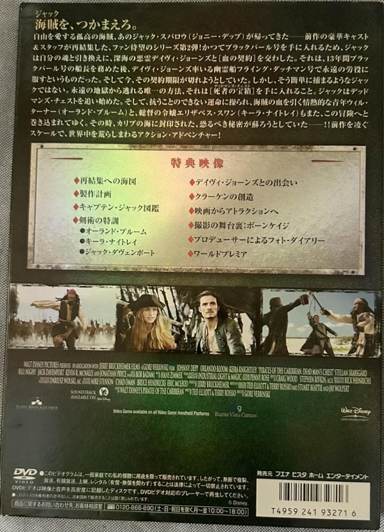 こちらは、世界中で大ヒットを記録した人気シリーズの第2作、2006年公開の映画「パイレーツ・オブ・カリビアン/デッドマンズ・チェスト」(原題:Pirates of the Caribbean: Dead Man's Chest)のDVDです。