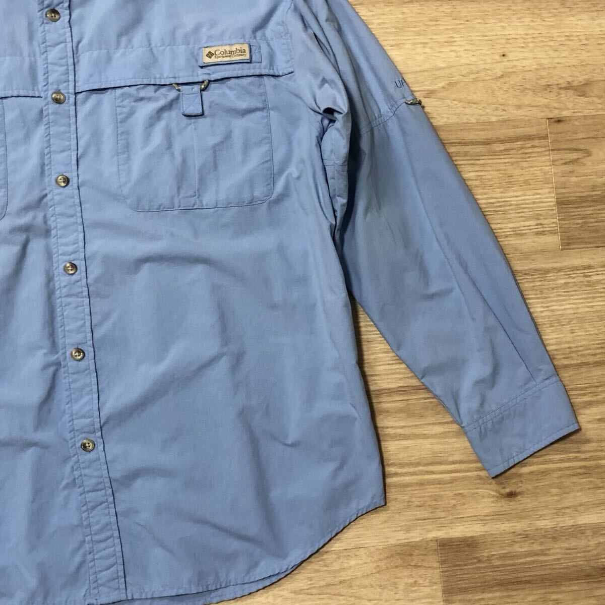 【送料無料】Columbia PFG長袖フィッシングシャツ青 メンズMサイズ コロンビア長袖シャツアウトドア釣り登山