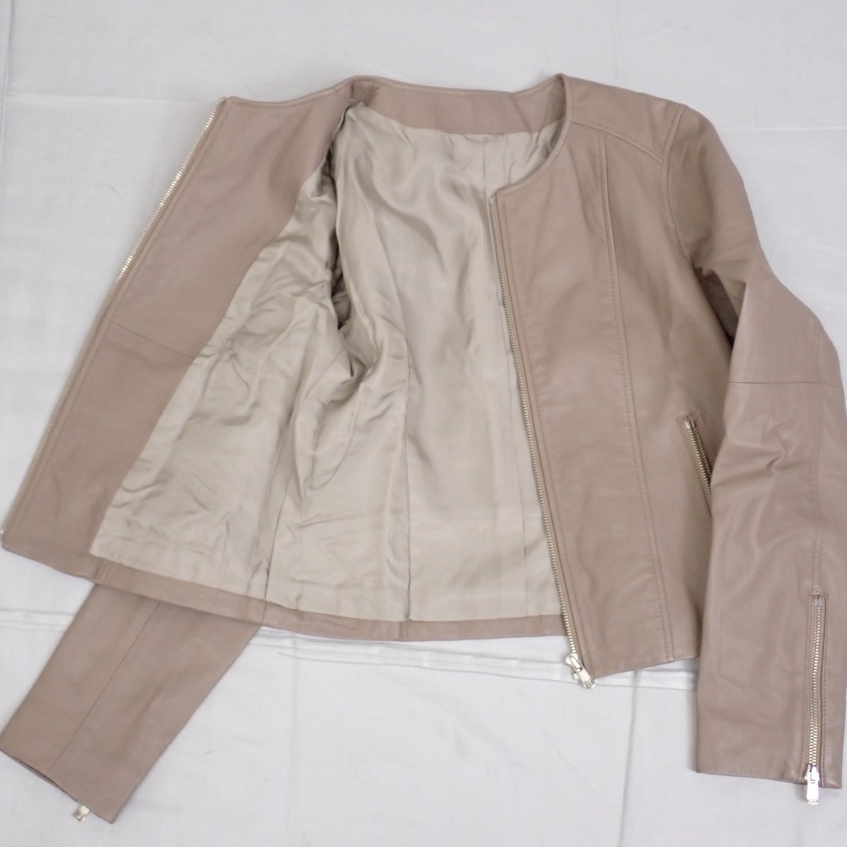 ★ANAYI/アナイ ノーカラー レザージャケット 38/レディースS~M相当/グレージュ/羊革&2130600008