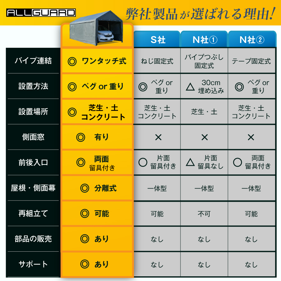 【レビューで7000円相当プレゼント】ALL GUARD ガレージテント 3×6m カバー カーポート パイプ車庫 キャノピー タープ 大型 車 駐車 倉庫