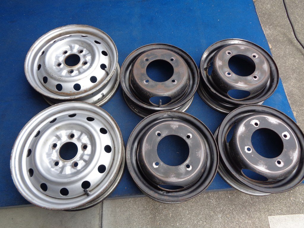 F・14インチ ・4.5J ・5穴 ・PCD114.3 ・オフセット+50 R・12インチ ・3.5J ・4穴 ・PCD150 ・オフセット+87 ・ホイールのみ6本セット ・キズ、サビあり ・twincam_backfire 管理番号251015-748