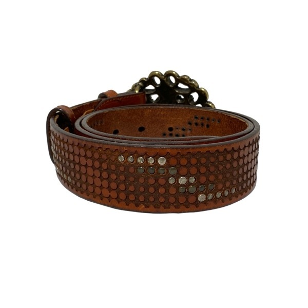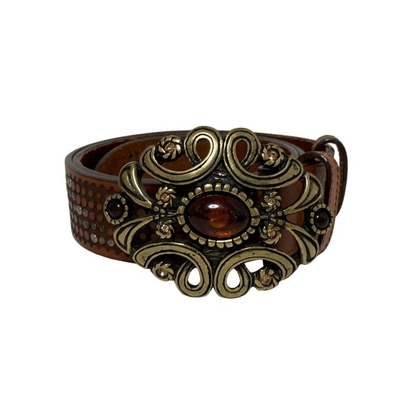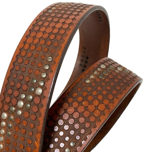 エリオット ローズ ELLIOT RHODES - レザー ブラウン×ゴールド×オレンジ ラインストーン/カラーストーン/スタッズ ベルト