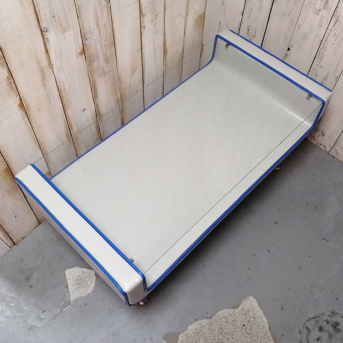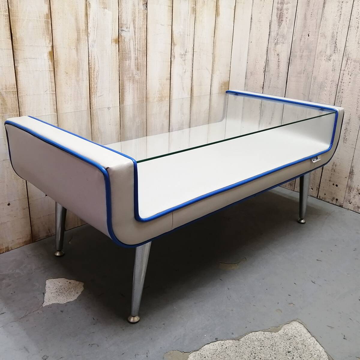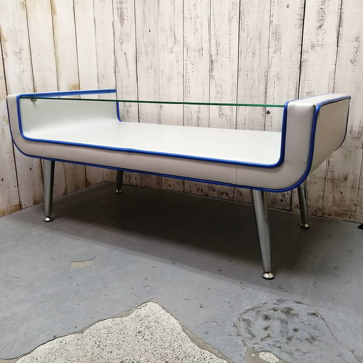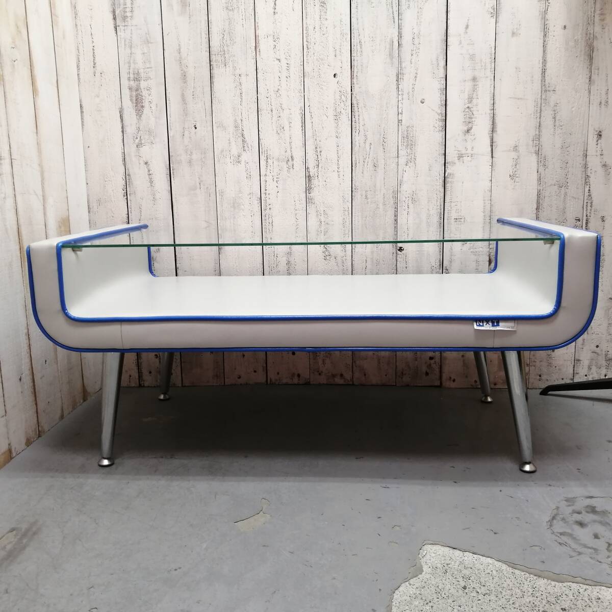 | 商品名稱 : | ◎25102213v 昭和 レトロポップ♪ ガラス天板 ローテーブル コーヒーテーブル センターテーブル ライトグレー×ブルー NXT レザー張り |