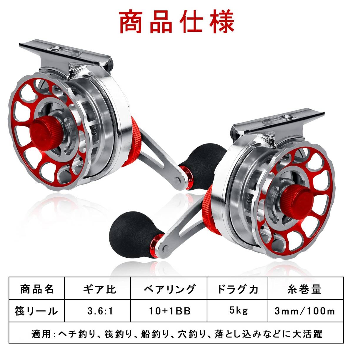 チヌリール 筏リール カセ釣り イカダリール 落とし込み 左/右巻き 3.6:1ギア比 10+1BB 氷釣り 磯釣り 最大ドラグ力5kg 左ハンドル MOTI033