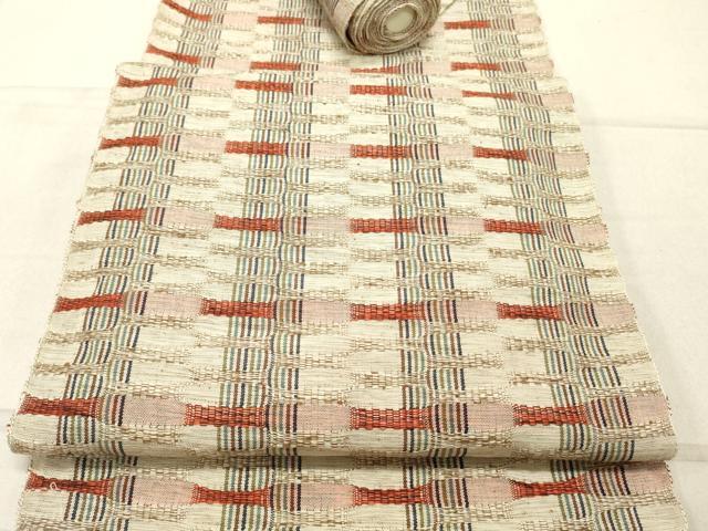 商品名稱 : 平和屋着物▼名古屋帯 帯反物 めがね織 変わり格子 高島屋扱い 逸品 未使用 DAAX6622zy