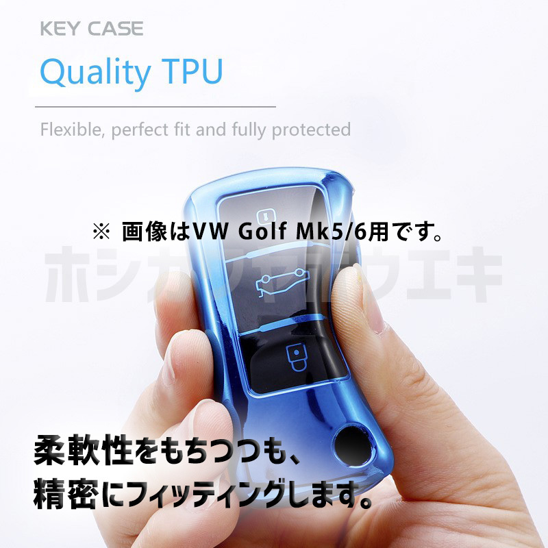 【高品質】TPU キーカバー キーケース 『青・ブルークローム』VW up! ポロ ゴルフ5/6 ビートル トゥーラン ティグアン ジェッタ シロッコ