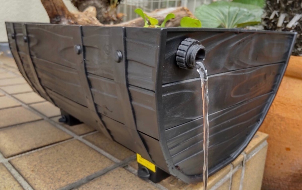 ビオトープに最適!樽型飼育容器【小】(ブラック)1個 スマートバルブでオーバーフロー対策済み(実測約13L)【オリジナルパーツ二点付き】