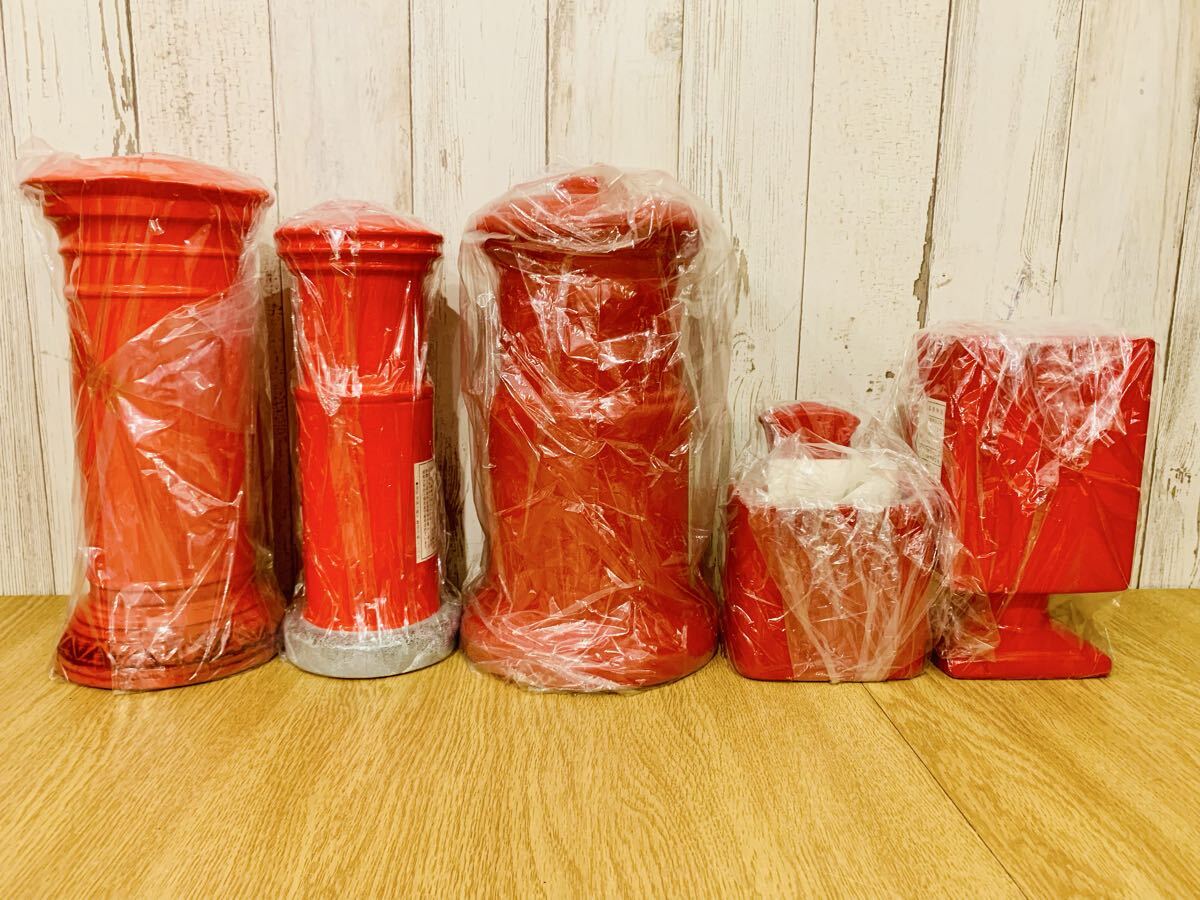 | 郵便ポスト型貯金箱(5点) 明治/大正/昭和/平成 レトロ/インテリア ・目立つ傷みもなく美品です。 ・袋等の梱包材は多少汚れあります。 状態、サイズは写真をご確認下さい。 中古品として、ご理解の上 ご購入お願いいたします。 | |||