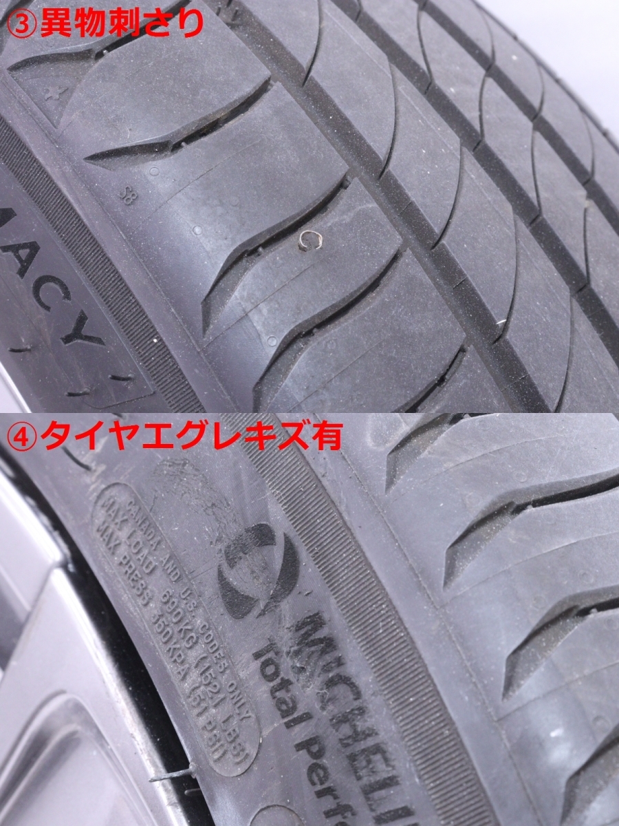 全体洗車キズ、細かい飛び石キズ、タイヤ使用感有、