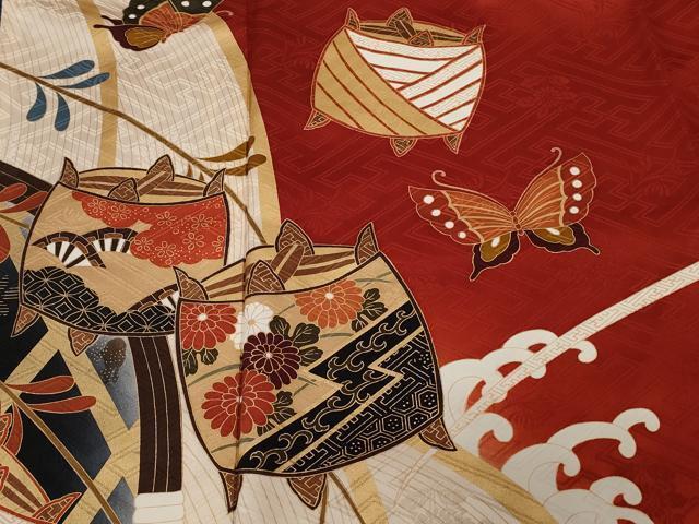 | 身丈 167cm(肩から) 裄丈 67cm 袖丈 112cm 縫込み 2cm 袖幅 35cm 前幅 25cm 後幅 29cm 着物縫いこみ 内揚げ 2cm 裄 お袖側 約1cm 身頃側 約2cm 《 サイズについてはこちら 》 |