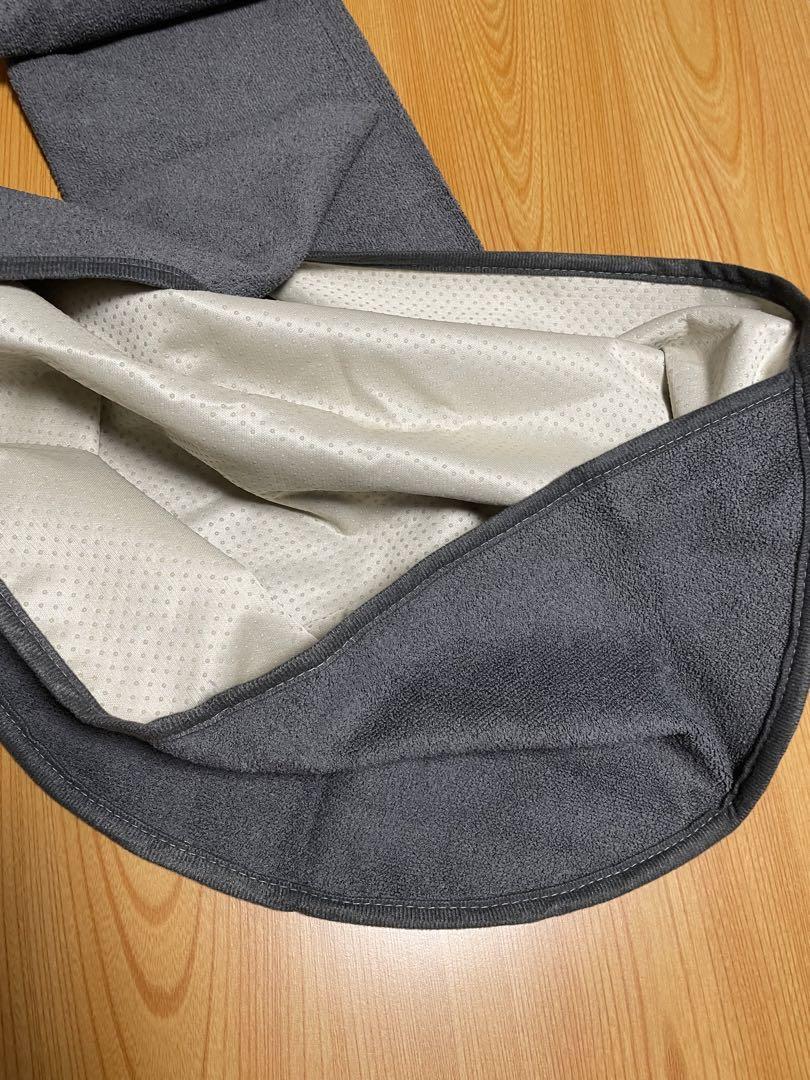 超吸水性タオル布素材、触り心地は良く、蒸れずらい。通気性、防水、
