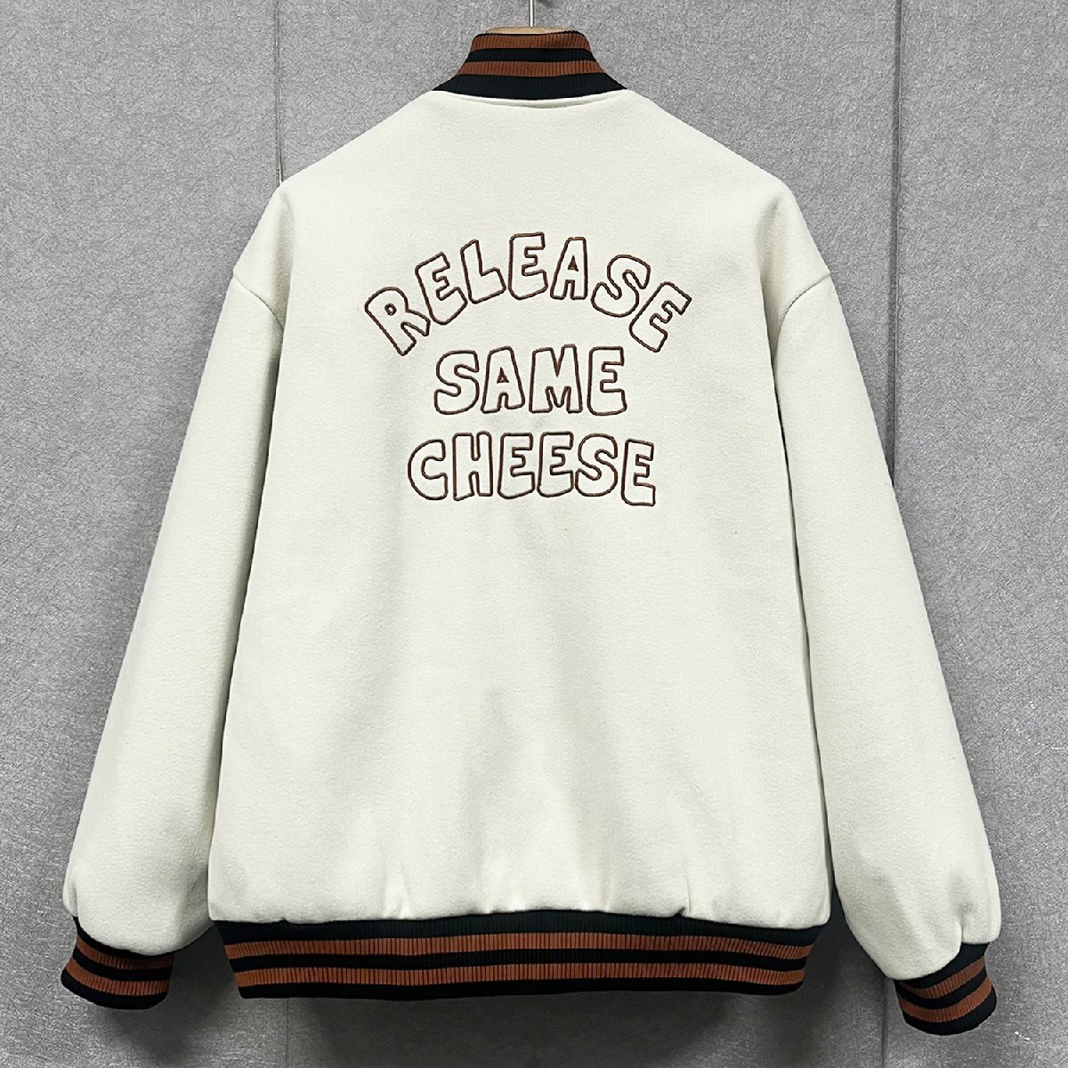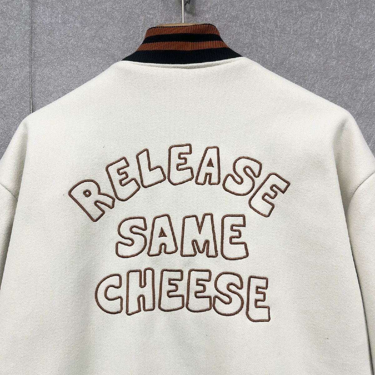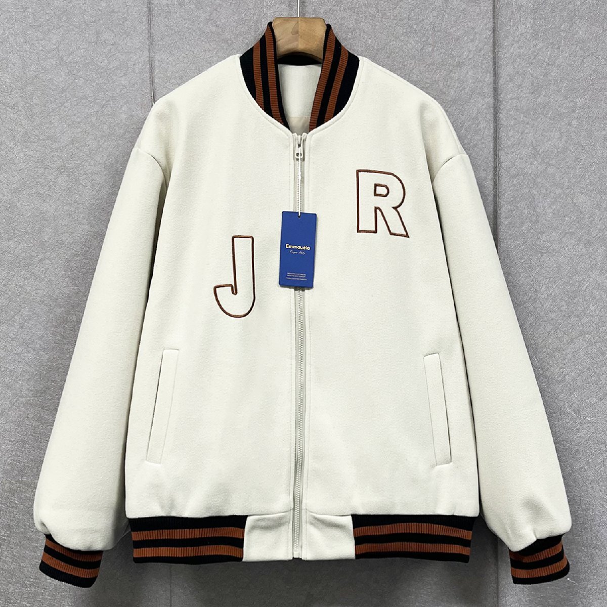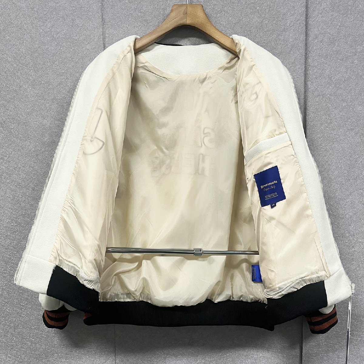 個性・スタジャン 定価7万◆Emmauela・イタリア・ミラノ発◆カシミア100% ソフト 保温 英字刺繍 ブルゾン カジュアル アメカジ 普段着 L/48サイズ