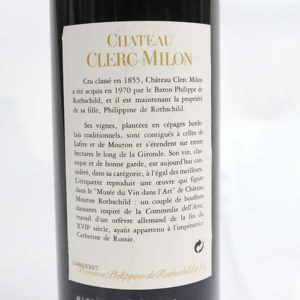 | 商品名稱 : | 1円~CHATEAU CLERC MILON(シャトー クレール ミロン)1997 12.5% 750ml O25J300261 |