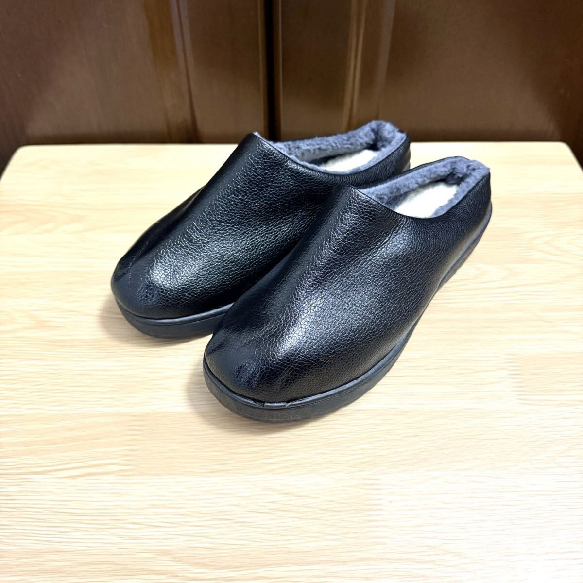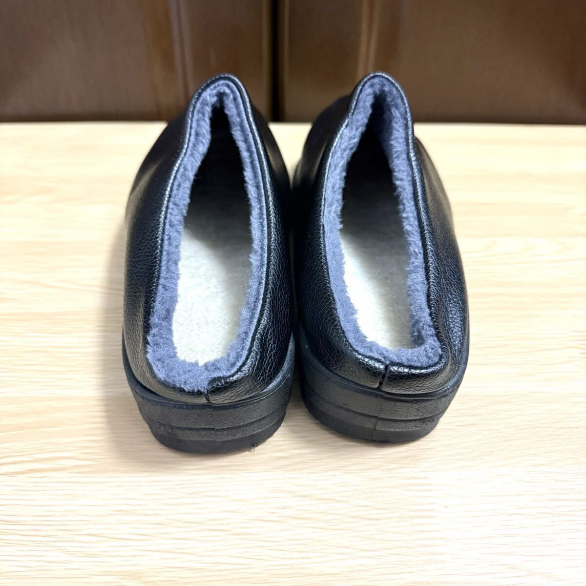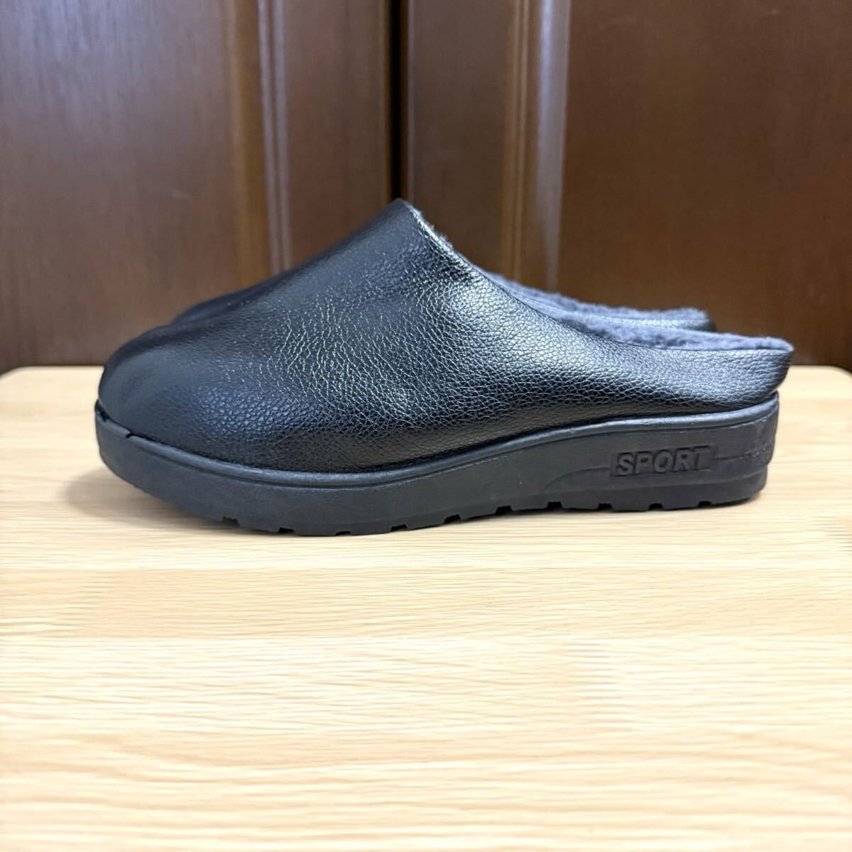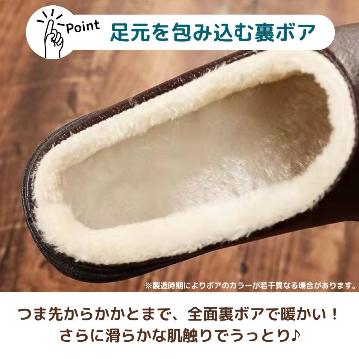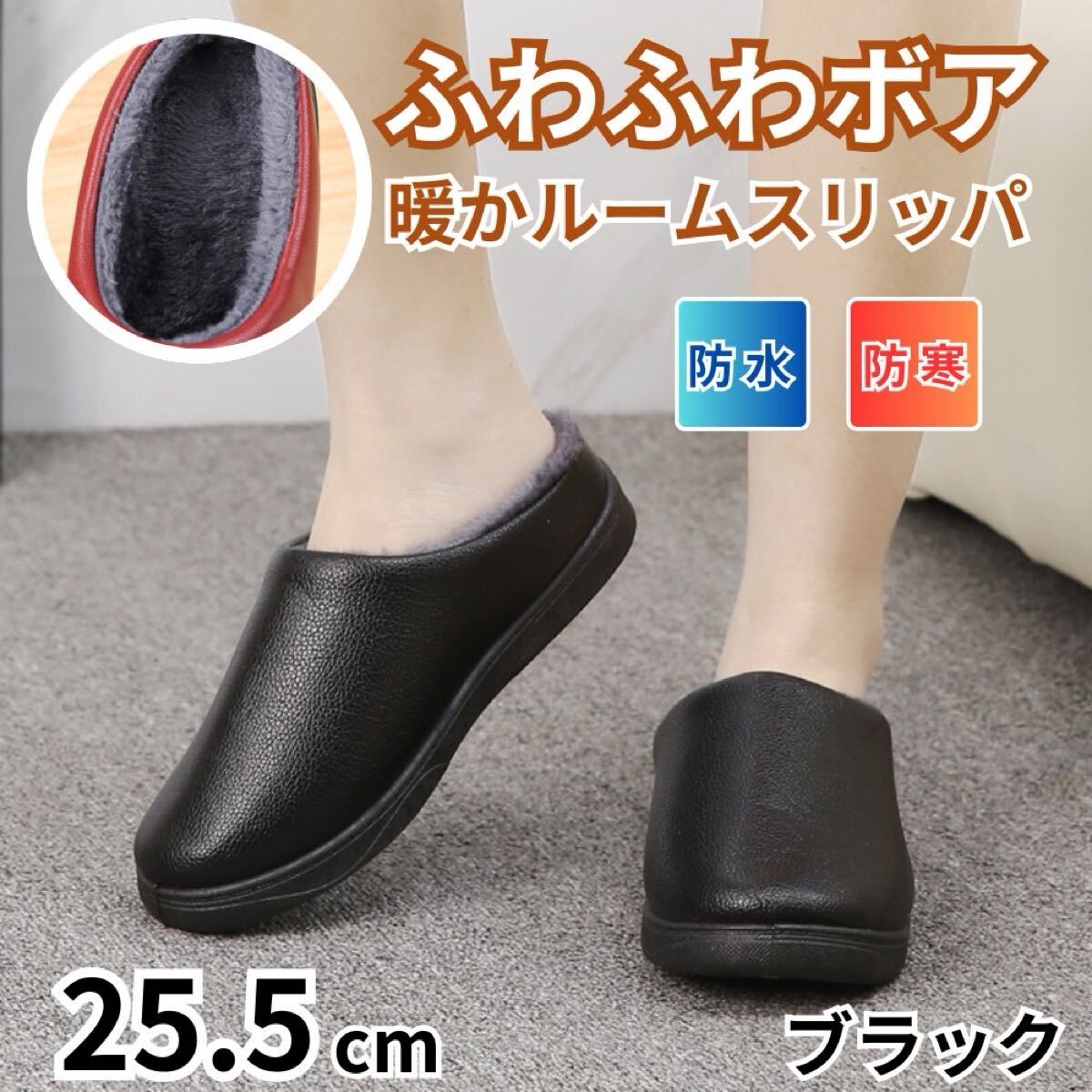 ボアサンダル スリッパ 暖かい メンズ レディース 冬 裏ボア ルームシューズ あったか レザー調 滑り止め ブラック 25.5