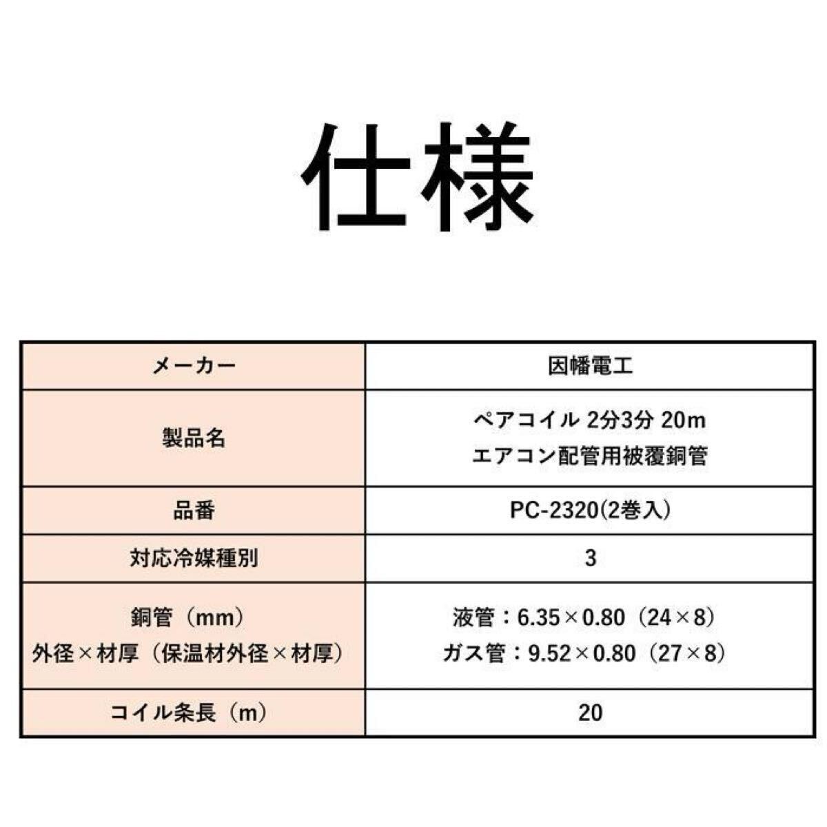 | 商品名稱 : | 因幡電工 ペアコイル 2分3分 20m エアコン配管用被覆銅管 PC-2320(2巻セット)20M No.1 |