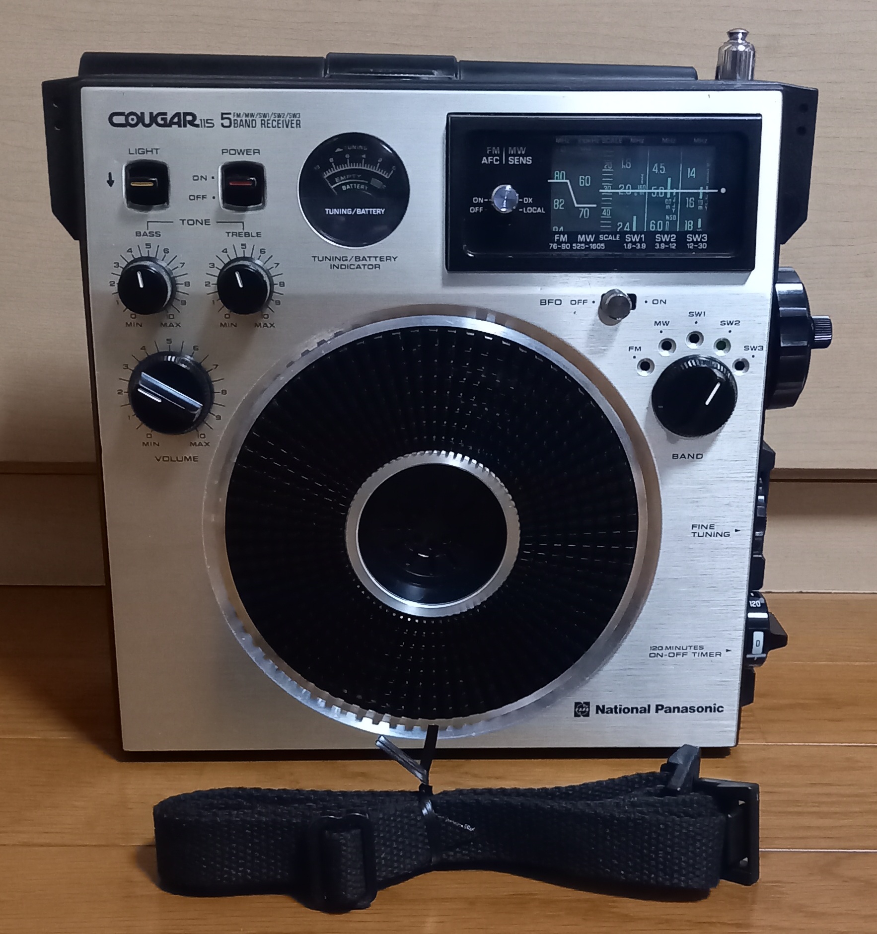 ナショナル(パナソニック)クーガ115『RF1150(後期型)』を修理整備した動作品で、各バンドとも良好に受信でき、